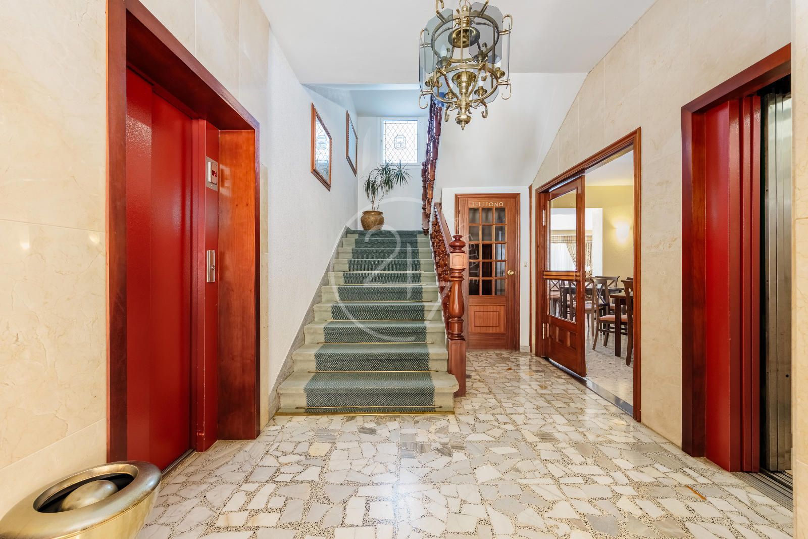 La parcela de más de 5.700 m² ofrece piscina exterior, jardines cuidados, terrazas panorámicas, pista de tenis, zona infantil y aparcamiento privado. La edificación actual, distribuida en nueve niveles y con más de 2.600 m² construidos, necesita una reforma integral, lo que permite adaptarla a los nuevos estándares de lujo y sostenibilidad.