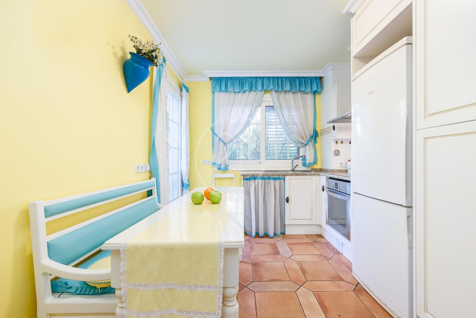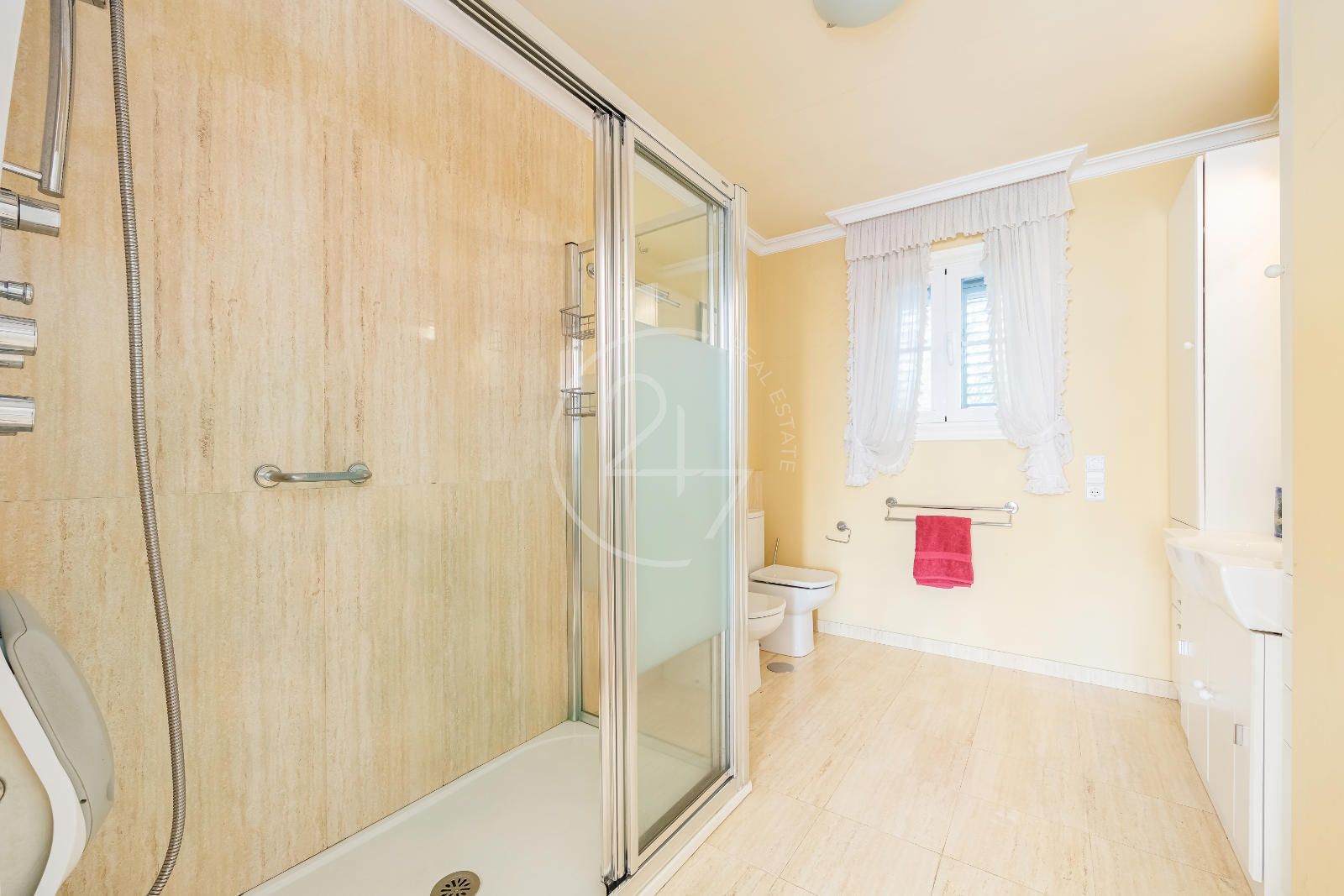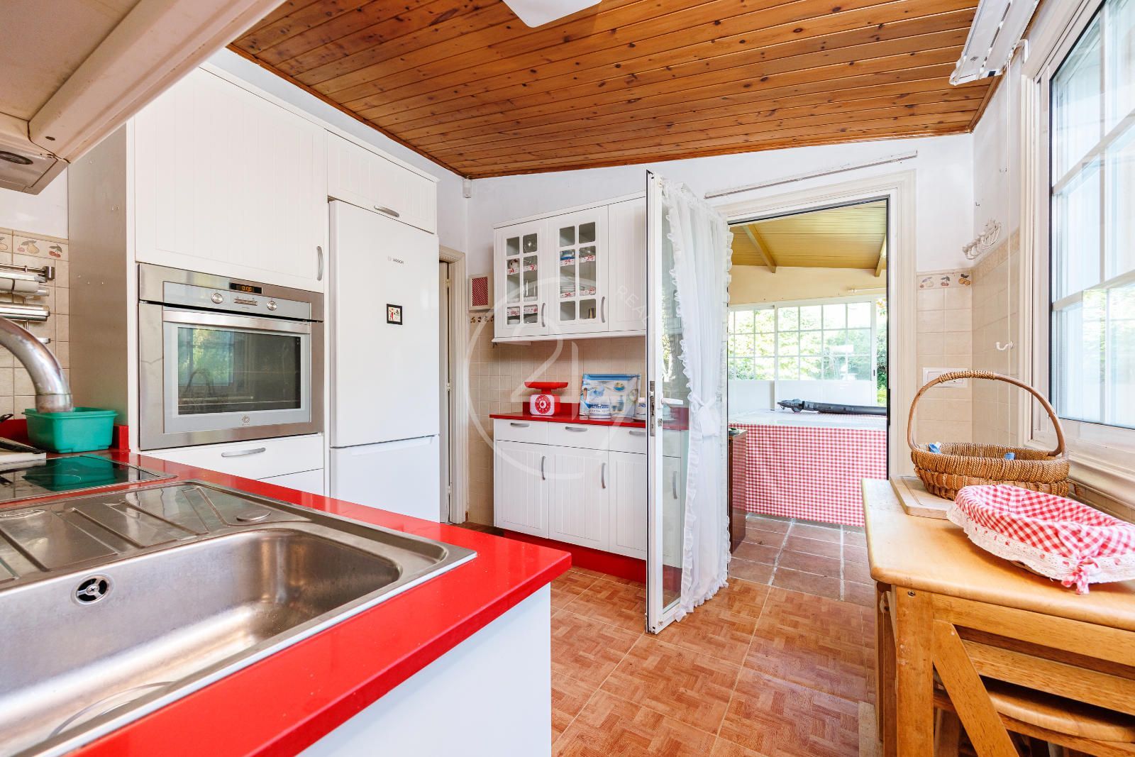 Uno de los grandes atractivos de esta villa es el estudio independiente con entrada propia desde la calle. Se trata de un espacio totalmente equipado con dormitorio amplio y chimenea, cocina comedor y una zona de verano que se abre al jardín y la terraza, rodeada de árboles maduros y vegetación que aseguran privacidad y encanto. Este anexo resulta perfecto para recibir invitados, acoger a familiares o destinarlo al alquiler en temporada alta, ofreciendo así un interesante retorno de inversión.